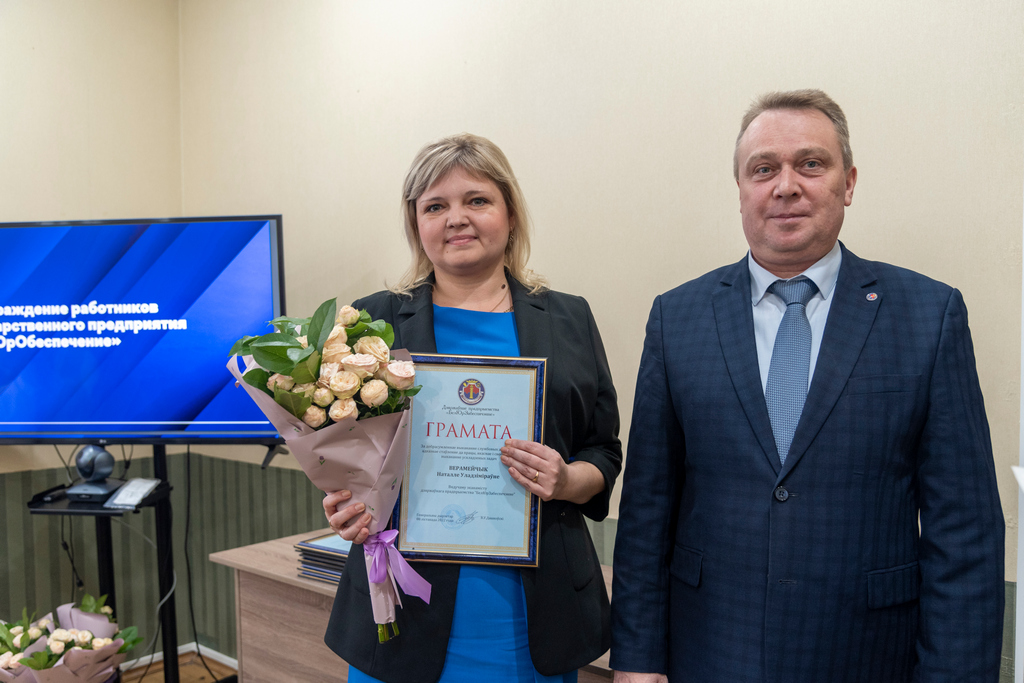 В ходе мероприятия состоялось награждение работников за добросовестный труд и ответственное отношение к работе. Значимый вклад первого генерального директора Кадышева А.В. в становление и развитие предприятия отмечен Почетной грамотой. Грамотами предприятия награждены заместитель начальника отдела планово-экономической работы Валько Н.В., ведущий экономист Веремейчик Н.В., ведущий инженер по материально-техническому снабжению Сидорович В.Э., старший охранник Койко А.А., инженер охранно-пожарной сигнализации Бойков А.В. Благодарности предприятия объявлены ведущему оценщику Кулешову В.А., ведущему экономисту по реализации Чемруковой Ю.А., ведущему специалисту по документационному обеспечению Егоровой Л.А., специалисту по строительству и эксплуатации зданий Северину Д.Т.