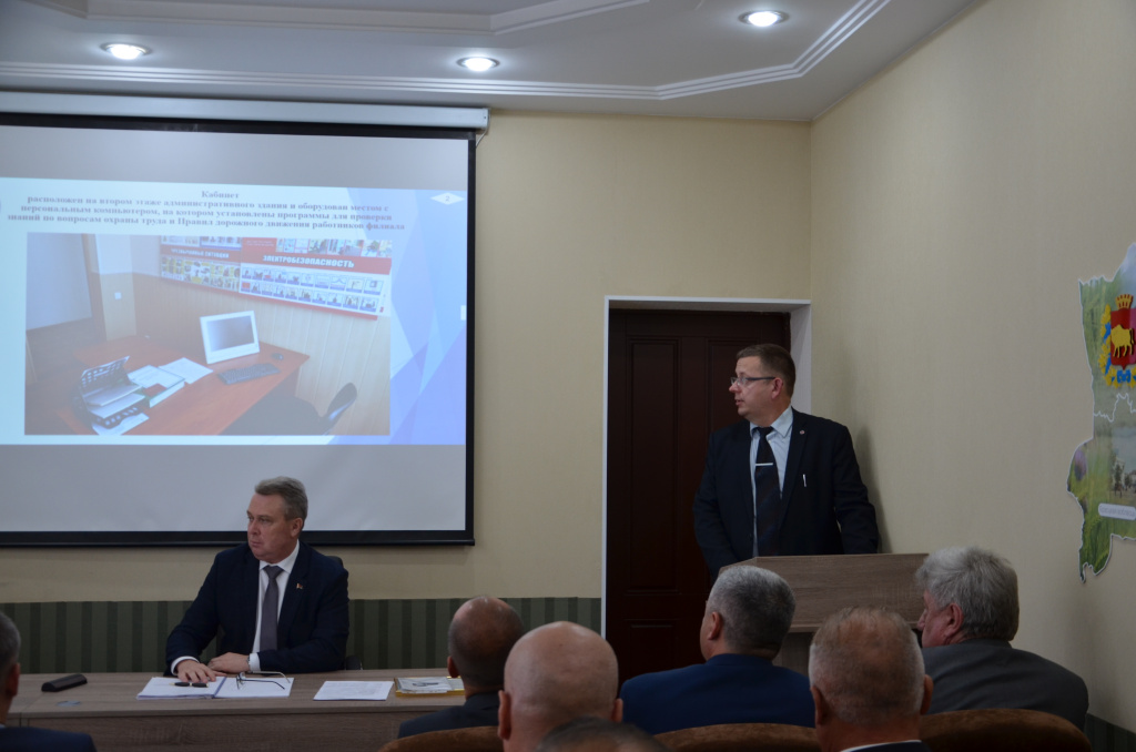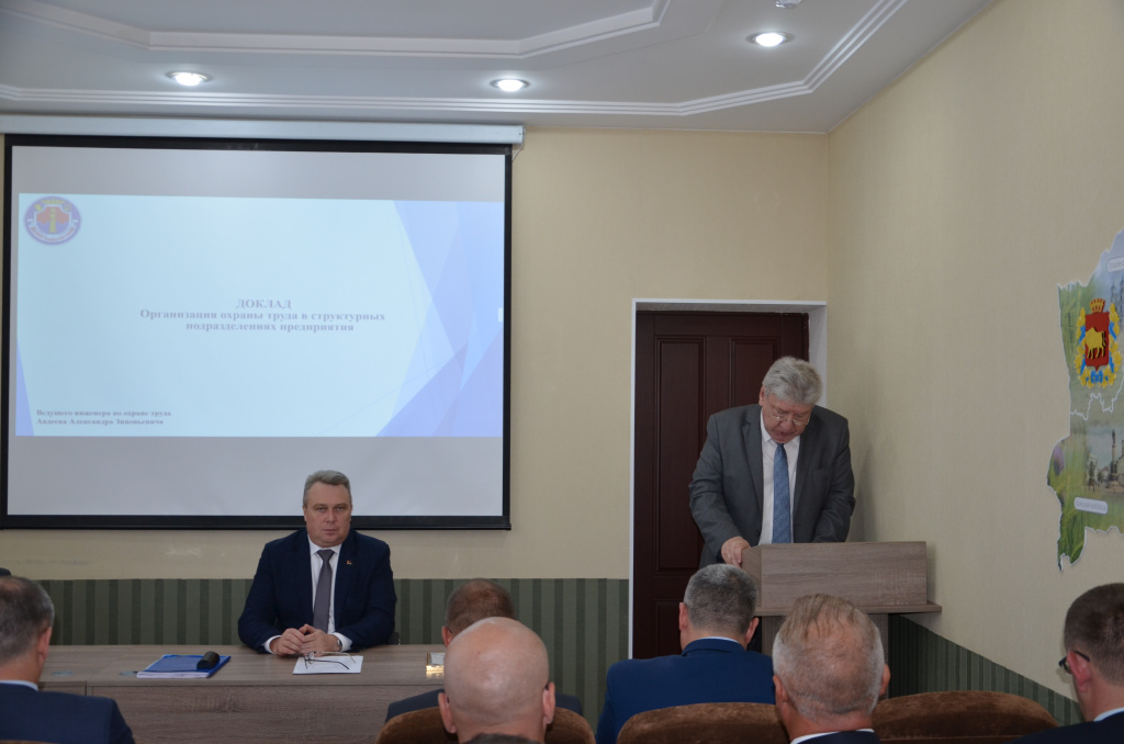 Открывая совещание генеральный директор предприятия Дашковский В.В. отметил важность обеспечения безопасности и здоровья работников на рабочих местах, предотвращения случаев производственного травматизма при проведении работы по исполнению требований Директивы Президента Республики Беларусь от 11 марта 2044 года № 1 «О мерах по укреплению общественной безопасности и дисциплины».