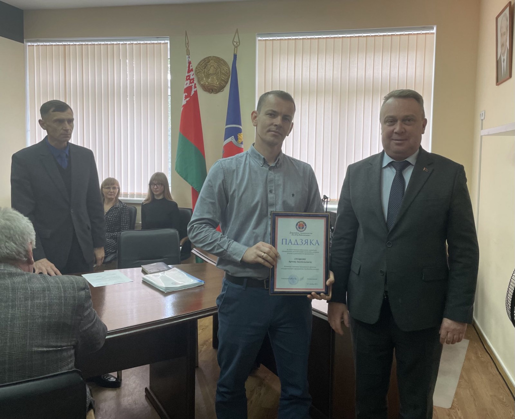 В завершении визита Валерий Владимирович вручил благодарность инженеру-механику Гродненского филиала Груцкому Артёму Анатольевичу за высокие показатели в работе.