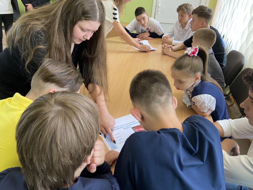 С приветственным словом выступила секретарь первичной организации ОО «Белорусский республиканский союз молодежи» Дарья Богдан. С целью популяризации белорусской символики и уважительного отношения к ней, а также воспитания чувства патриотизма для детей Детского дома № 3 проведена патриотическая викторина.