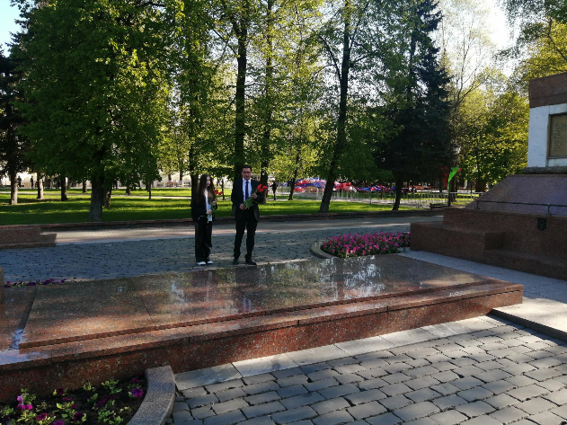 Работники Гродненского филиала возложили живые цветы к Братской могиле советских воинов и партизан в Гродно — «Вечный огонь». Мемориальный комплекс расположен у входа в парк Жилибера и был открыт в 1949 году. Ранее на этом месте находились захоронения солдат и офицеров, отдавших свои жизни в годы Великой Отечественной войны (всего 50 могил). Памятник представляет собой четырёхгранный обелиск на гранитном постаменте. Золотыми буквами на камне выписаны имена защитников Родины. Среди них есть партизанка Ольга Соломова, именем которой названа одна из улиц Гродно.