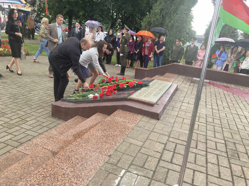 Работниками Гомельского филиала государственного предприятия «БелЮрОбеспечение» к монументу возложили цветы. В память воинам, отдавшим свою жизнь за светлое будущее нашей Родины присутствующие почтили минутой молчания.