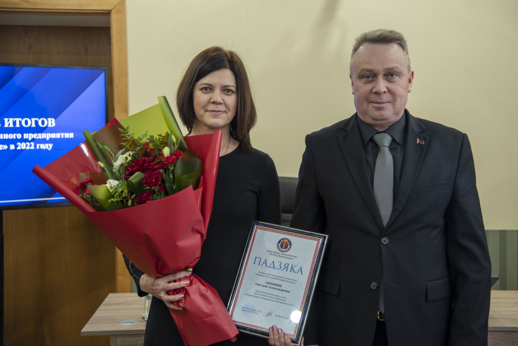 За высокий профессионализм и добросовестное отношение к выполнению должностных обязанностей благодарность государственного предприятия «БелЮрОбеспечение» объявлена заместителю начальника отдела бухгалтерского учета и финансов Светлане Скрынник, ведущему специалисту по кадрам Светлане Вареник, ведущему специалисту по продаже Станиславу Астасевичу.