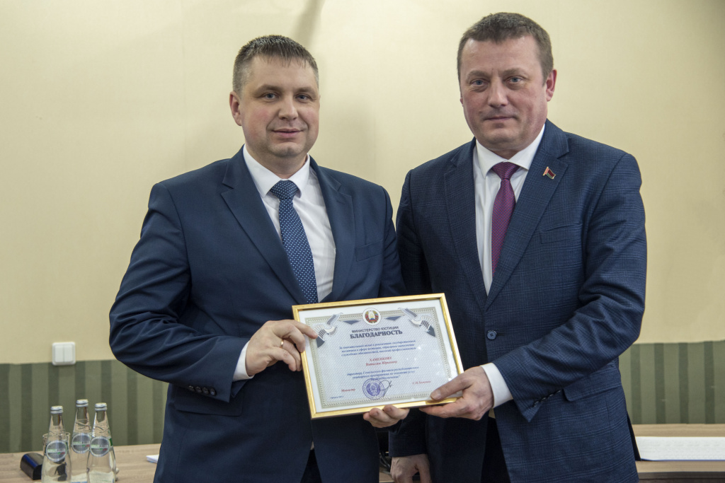 От руководства и коллектива генеральный директор предприятия вручил Министру памятный подарок, отражающий единство органов и организаций системы Министерства юстиции в реализации возложенных на них государственных задач.