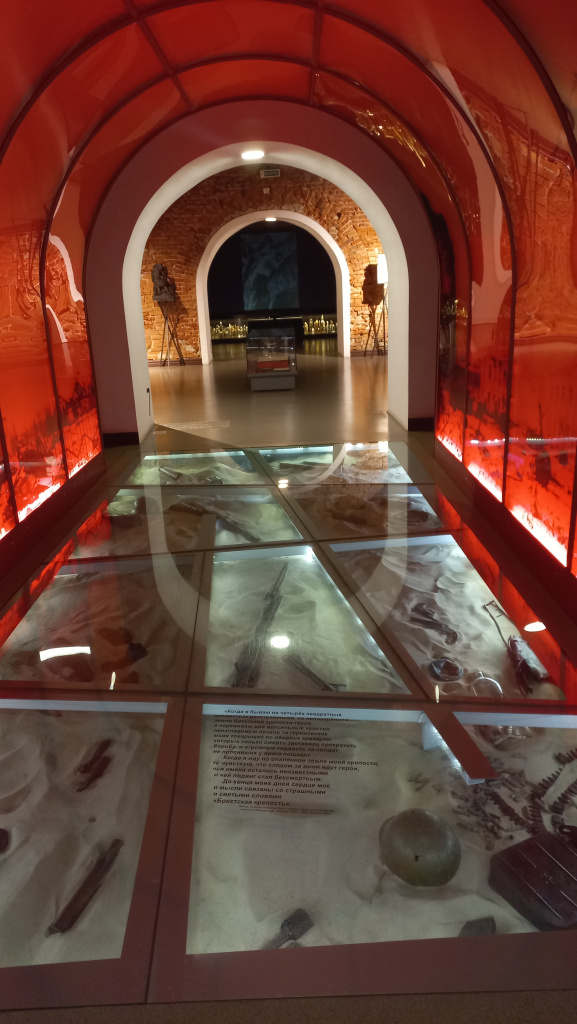 В экспозиции использованы мультимедийные, сенсорные и проекционные экраны, звуковое и световое оформление, позволяющее посетителю окунуться в обстановку довоенной мирной жизни, почувствовать, что происходило на земле крепости, когда началась война. Система направленного звучания «Звуковые купола» даёт возможность услышать голоса участников обороны и вспомнить о погибших.