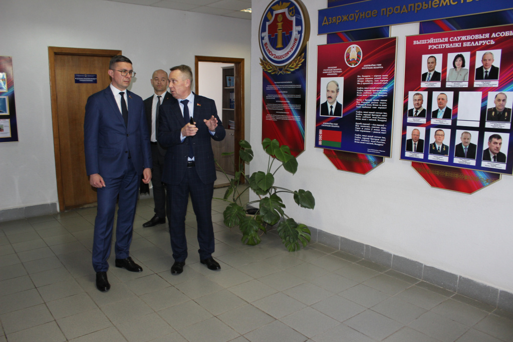 Сегодня Министр юстиции Республики Беларусь Евгений Иосифович Коваленко, заместитель Министра юстиции Дмитрий Олегович Костюкевич, начальник главного управления финансово-экономической работы и материально-технического обеспечения Вячеслав Викентьевич Тышкевич посетили государственное предприятие «БелЮрОбеспечение».