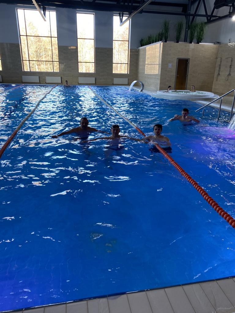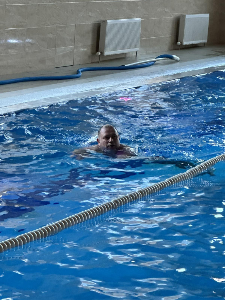 Кульминацией дня стали состязания по плаванию. Участники боролись за звание лучших на дистанции 50 метров вольным стилем. Нельзя было не заметить волнение у спортсменов: каждый стремился показать наилучший результат в личном заплыве, приближая себя к заветному пьедесталу. Мастерами индивидуальных достижений стали в мужском заплыве Евгений Беседин, а в женском - Юлия Кулеш. Александр Мажанов наградил победителей соревнования, поблагодарив участников за честную и бескомпромиссную борьбу, показанные спортивные результаты, и пожелал крепкого здоровья, семейного благополучия, успехов и новых побед. Зрители наградили участников аплодисментами за непримиримый конкурентный дух.