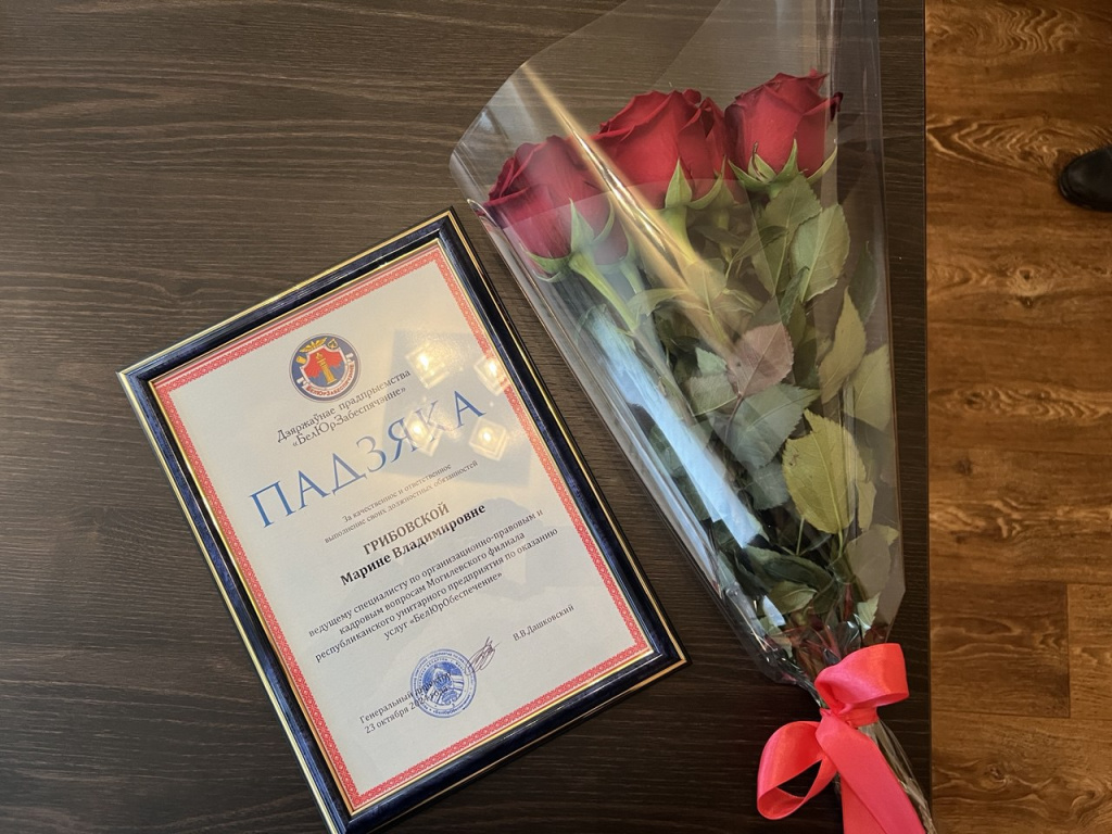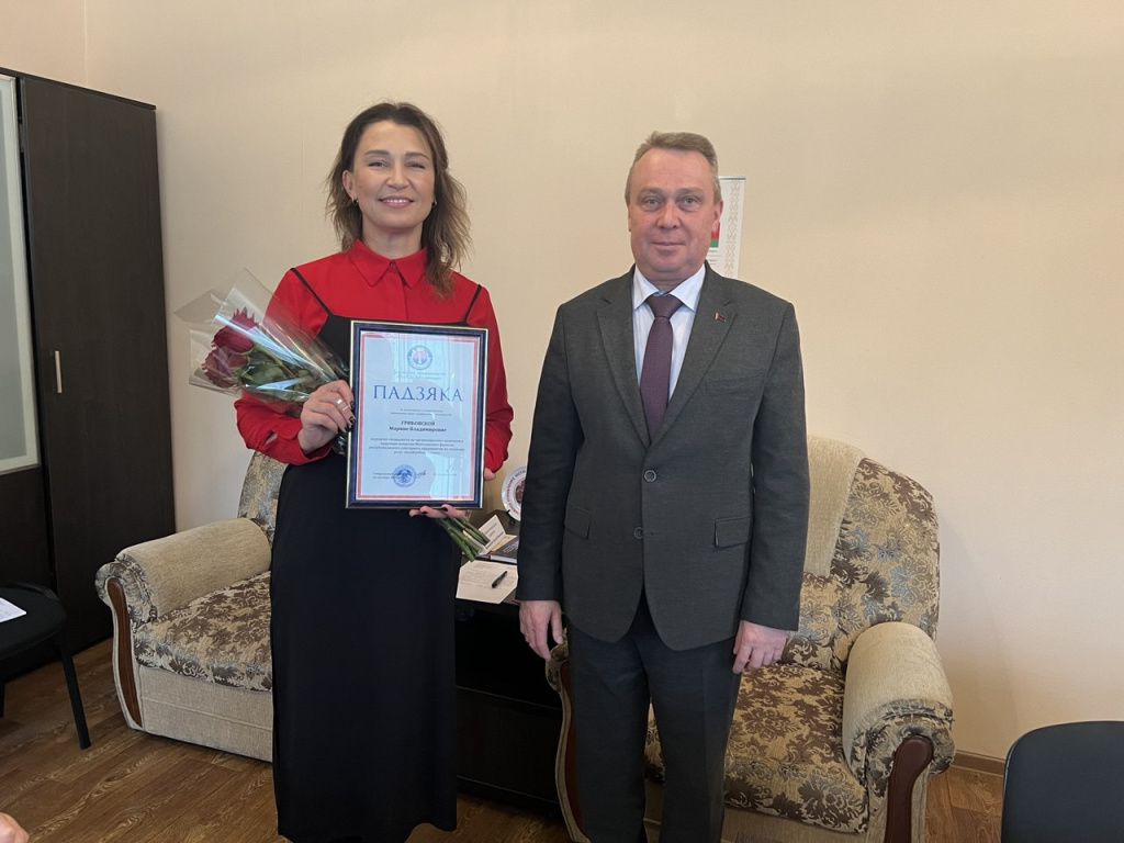 Визит завершился торжественной церемонией награждения, на которой ведущий специалист по организационно-правовым и кадровым вопросам Марина Грибовская была удостоена благодарности за высокие достижения в своей профессиональной деятельности.