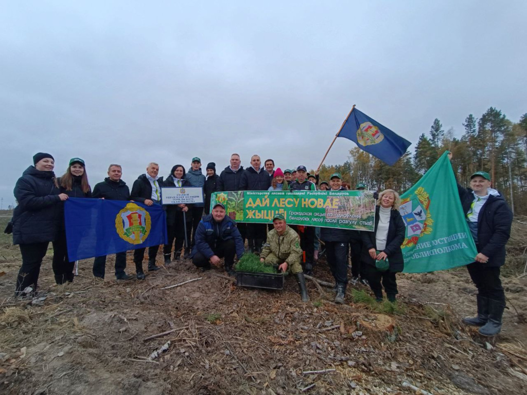 25 октября 2024 года сотрудники Гомельского филиала и главного управления юстиции Гомельского облисполкома приняли участие в акции по озеленению. На делянке Речицкого лесхоза площадью два гектара было высажено 12 тысяч саженцев сосны и березы. Среди добровольцев трудился и заместитель Министра юстиции Олег Кот.
