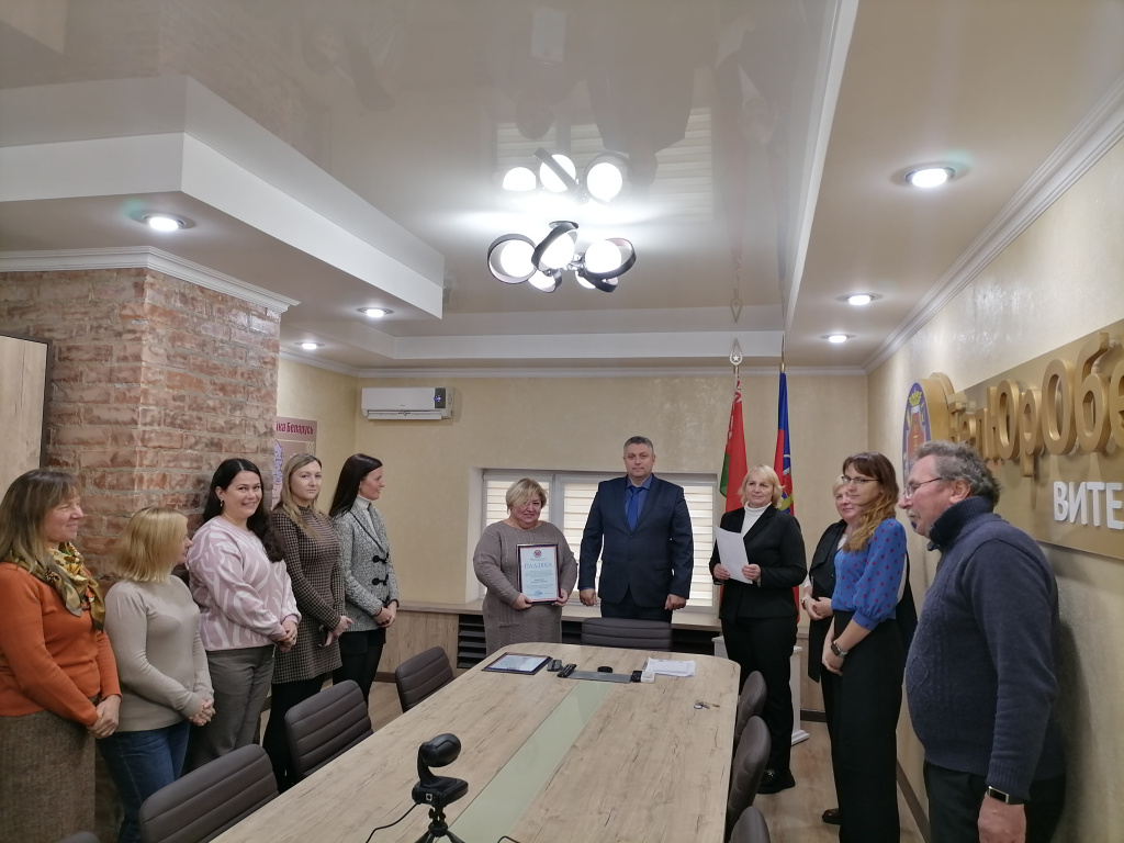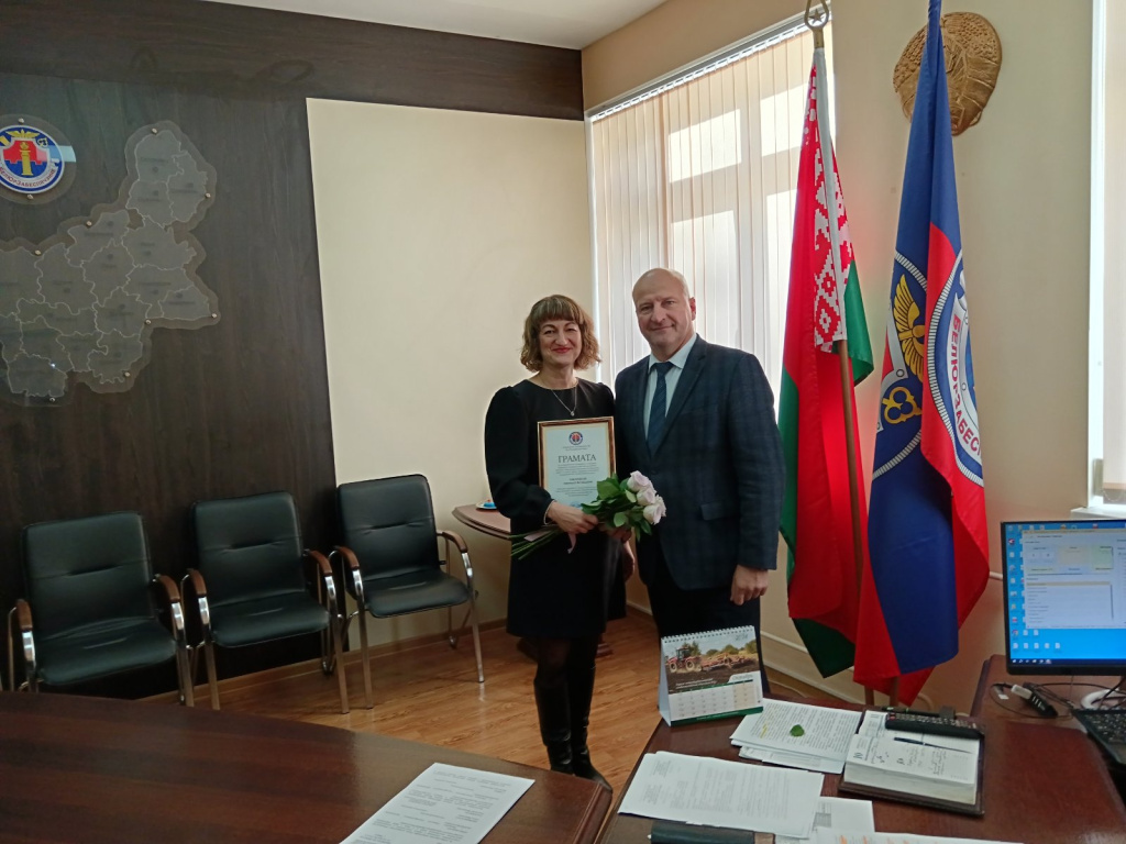 В этот день работникам Брестского филиала ведущему оценщику Горевому В.И. и бухгалтеру Сарнавской И.Н. за добросовестное исполнение служебных обязанностей, ответственное отношение к работе, качественное и своевременное исполнение возложенных задач и в связи с Днём образования предприятия были вручены грамоты. Директор Брестского филиала Андрей Адамович Азаревич поблагодарил коллектив за профессионализм и личный вклад каждого работника, благодаря которым предприятие достигло высоких результатов.