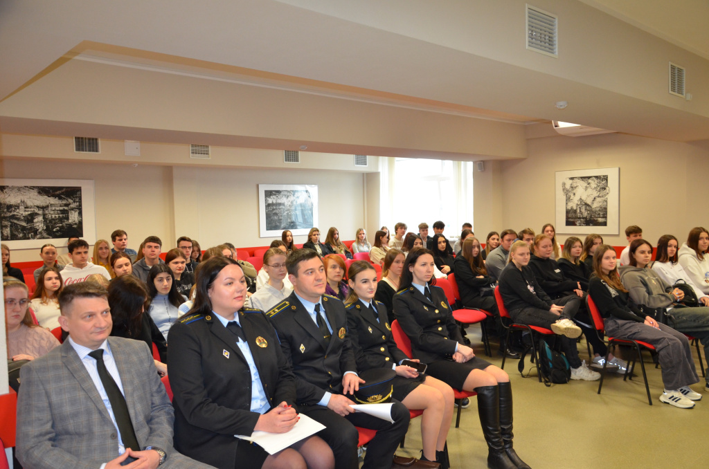 На базе учреждения образования «Колледж бизнеса и права» состоялся открытый диалог с учащимися III курса специальности «Правоведение» с участием заместителя генерального директора по безопасности