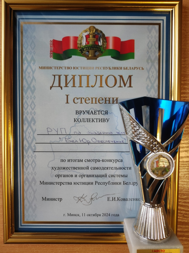 По итогам смотра конкурса коллектив государственного предприятия занял первое место с вручением кубка и диплома I степени.