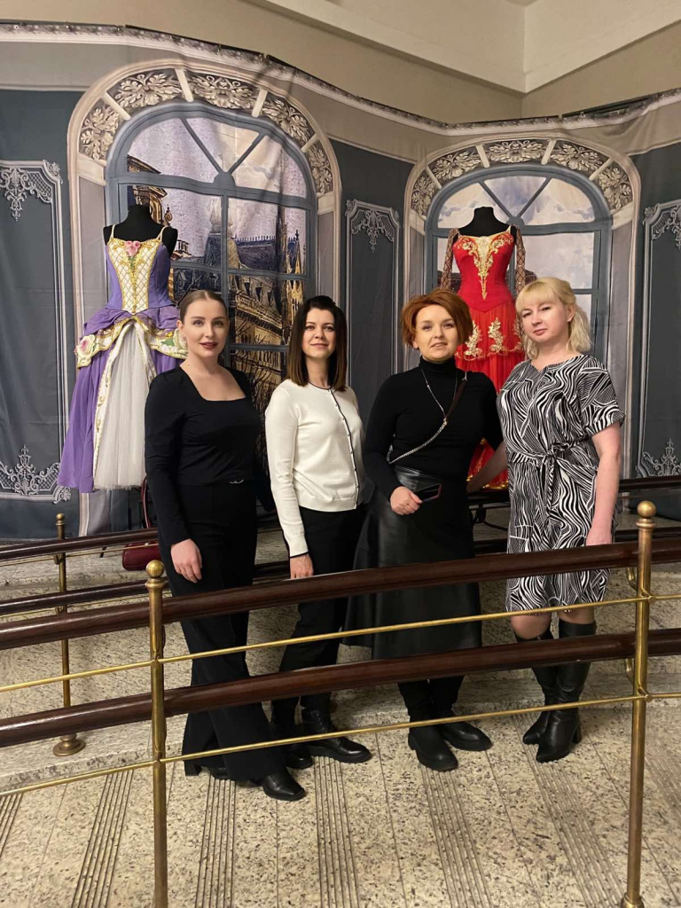 Сегодня прекрасная половина коллектива Республиканского унитарного предприятия по оказанию услуг «БелЮрОбеспечение» посетила Большой театр Беларуси. Снаружи здание театра украшено пятиметровыми скульптурами муз под предводительством Аполлона, окруженного нимфами. Здесь представлены Терпсихора – покровительница танца, держащая маску, Мельпомена – покровительница театрального искусства, Полигимния – покровительница поэтов-писателей гимнов, и Каллиопа – покровительница эпической поэзии.