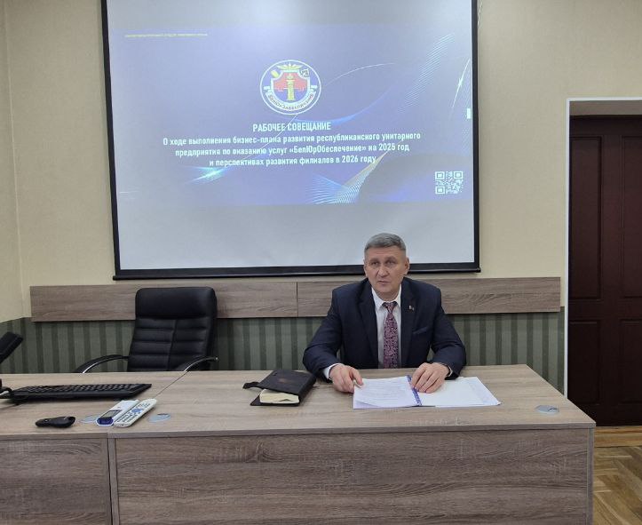 В республиканском унитарном предприятии по оказанию услуг «БелЮрОбеспечение» состоялось рабочее совещание, приуроченное анализу выполнения бизнес‑плана развития на 2025 год и определению приоритетных задач на 2026 год. В мероприятии приняли участие руководители подразделений центрального аппарата и областных филиалов предприятия.
