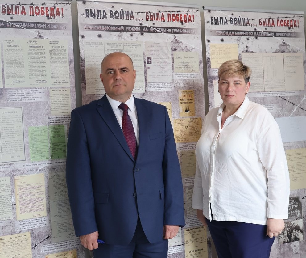 Сотрудники Брестского филиала республиканского унитарного предприятия по оказанию услуг «БелЮрОбеспечение» в главном управлении юстиции Брестского облисполкома ознакомились с подготовленной Госархивом Брестской области баннерной выставкой архивных документов «Была война… Была победа!».