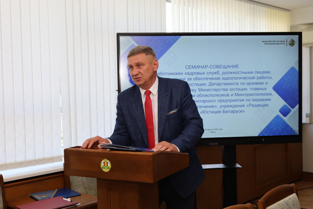 27–28 августа 2025 года состоялся семинар-совещание с работниками кадровых служб и должностными лицами, ответственными за обеспечение идеологической работы, организованный и проведенный Министерством юстиции.