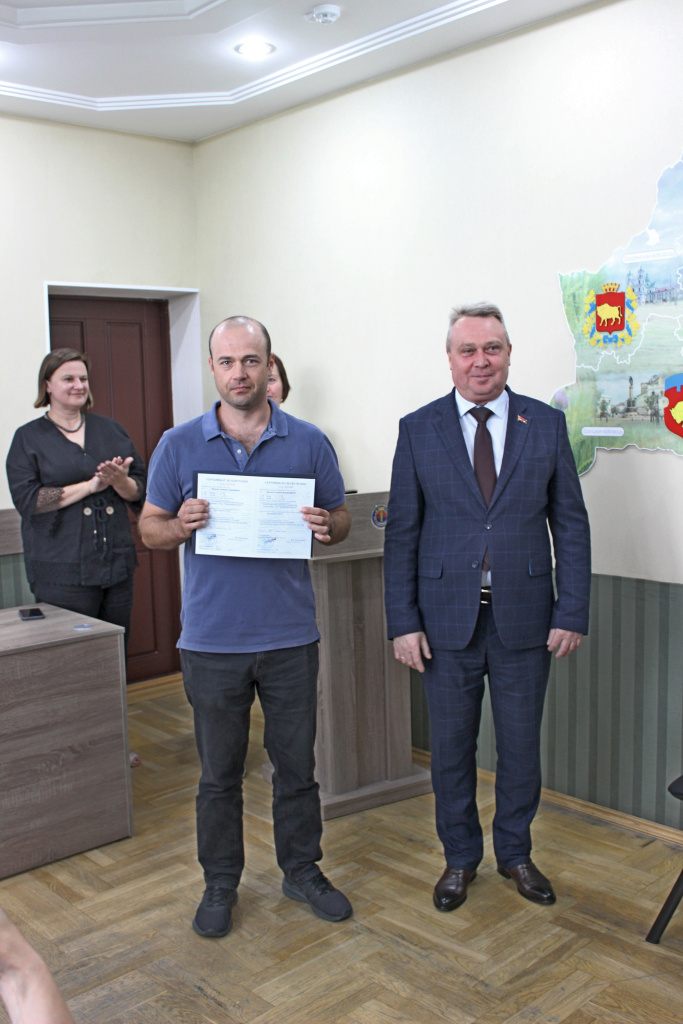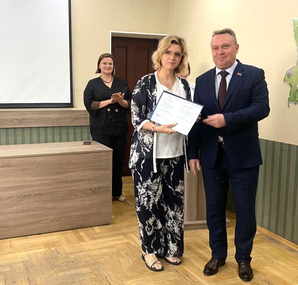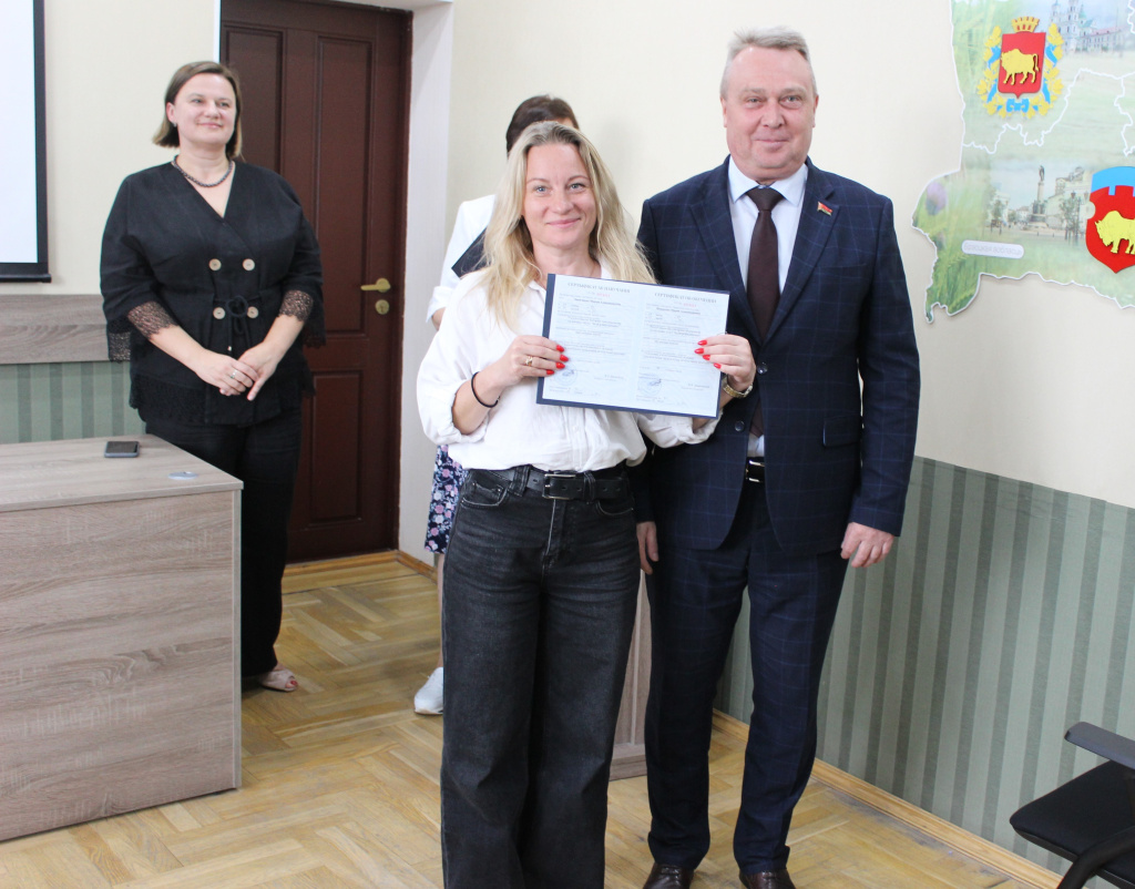 В присутствии начальника управления адвокатуры и лицензирования юридической деятельности Министерства юстиции Республики Беларусь Дианы Подлесской генеральный директор предприятия Валерий Дашковский вручил слушателям из разных регионов страны сертификаты об успешном прохождении курса обучения по теме «Подготовка к аттестационному экзамену для получения свидетельства об аттестации риэлтера» и пожелал им уверенности в своих силах на грядущем экзамене.