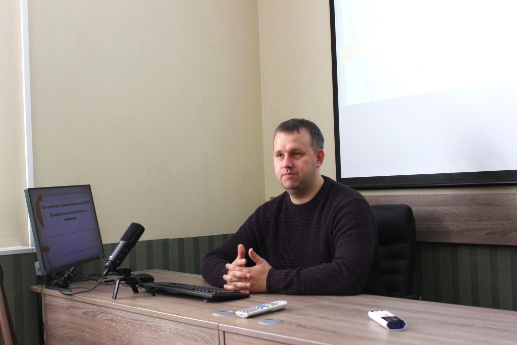 В ходе встречи специалист дал разъяснения о характере ОРВИ, отметив, что это группа заболеваний, вызываемых различными возбудителями и передающихся воздушно‑капельным путём, основным поражаемым органом является дыхательная система. Андрей Викторович подчеркнул, что при отсутствии своевременного обращения за медицинской помощью или при игнорировании лечения возможно присоединение бактериальной инфекции к вирусному воспалению, что может привести к обострению хронических заболеваний и развитию таких осложнений, как пневмония, бронхит и гнойные синуситы.