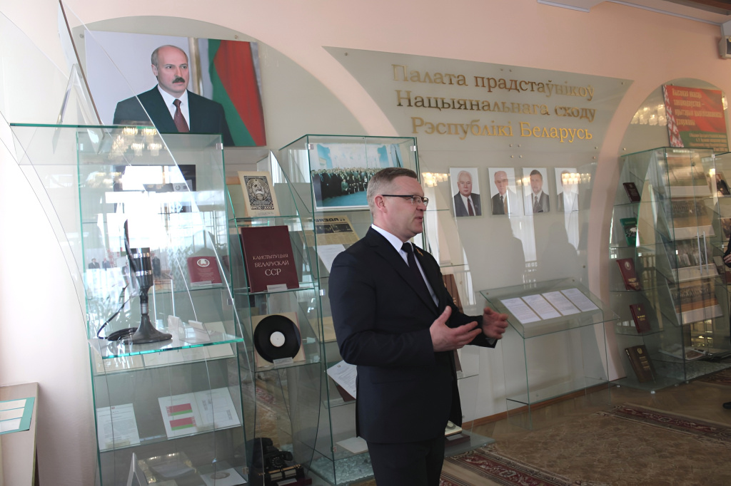Программа началась с рассказа об истории строительства Дома Правительства и ознакомления с музейной экспозицией, посвящённой развитию парламентаризма в стране. Гостей сопровождал депутат Палаты представителей Национального собрания Республики Беларусь, член Постоянной комиссии Палаты представителей по законодательству Андрей Викторович Анисимов, который рассказал о значении идеологической безопасности для устойчивого развития государства и текущих законотворческих инициативах.
