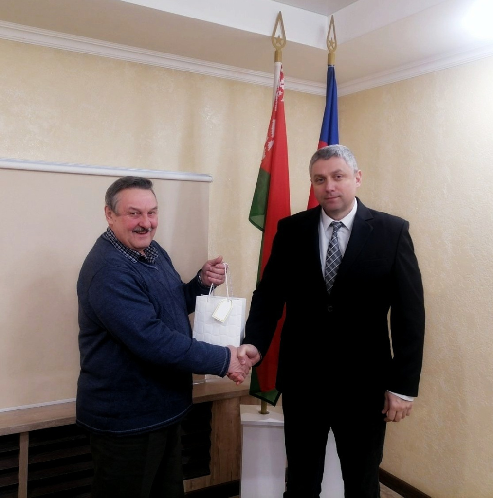 Во время встречи Евгений Александрович поделился воспоминаниями о службе. Слова благодарности за выполненный воинский долг, мужество и добросовестный труд ему выразил руководитель Витебского филиала государственного предприятия Алексей Шляхто.