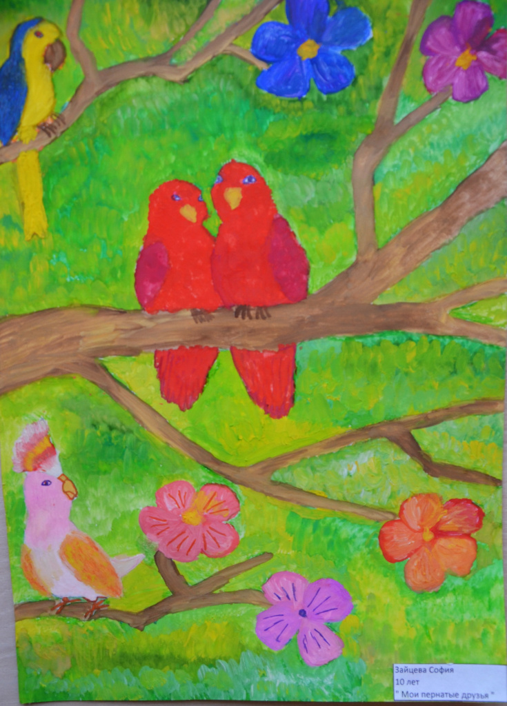 1-е место – Зайцева София, 10 лет, «Мои пернатые друзья»;
