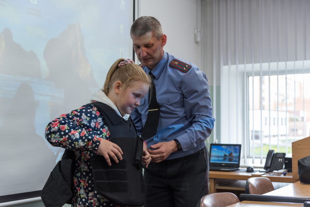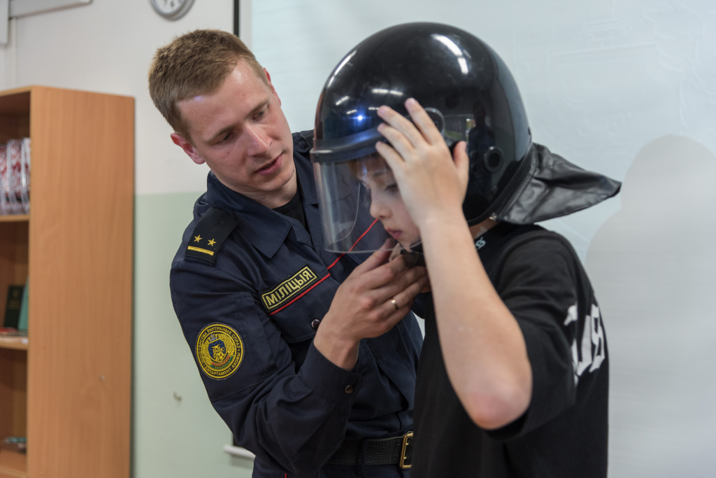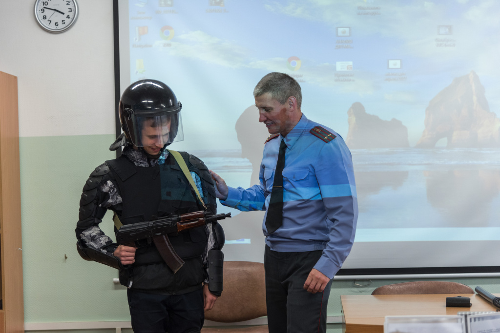 В ходе знакомства с работой отдела продемонстрированы образцы средств защиты и специальных средств, применяемых сотрудниками милиции. Все желающие смогли примерить экипировку сотрудника органов внутренних дел, попробовать свои силы в обращении с учебным оружием.