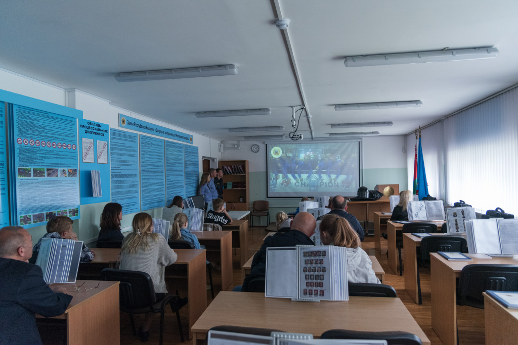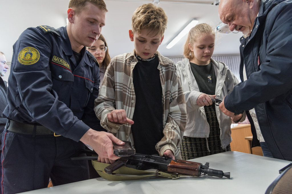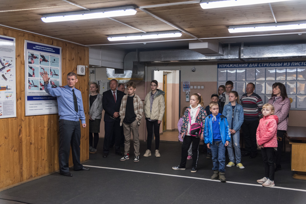 После просмотра фильма об истории и деятельности Московского (г. Минска) отдела Департамента охраны его сотрудники провели для детей экскурсию по зданию и боевому тиру, продемонстрировали достижения и награды отдела, показали образцы средств активной обороны и связи, а также служебных транспортных средств, используемых в Департаменте охраны. Дети с восторгом посидели на водительском месте служебного автомобиля, с большим интересом получили уникальный опыт работы с радиостанцией.