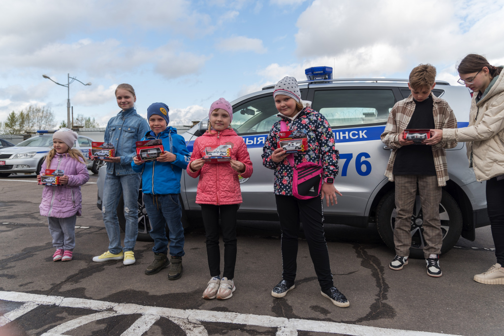 По завершении экскурсии профсоюзная организация предприятия вручила детям памятные подарки – стилизованную модель служебного автомобиля органов внутренних дел.