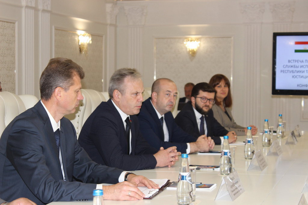 В рамках проходящего в период с 27 по 30 июля текущего года визита в Республику Беларусь делегации Службы исполнения при Правительстве Республики Таджикистан во главе с начальником Службы Саидвализода Барно Саиднаби в конференц-зале «Премьер» гостиницы «Президент-Отель» 28.07.2022 состоялась встреча гостей с представителями Министерства юстиции Республики Беларусь во главе с заместителем Министра юстиции Сергеем Калиновским.