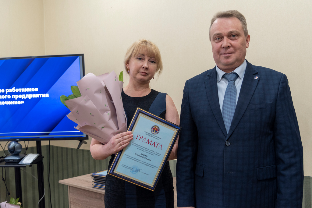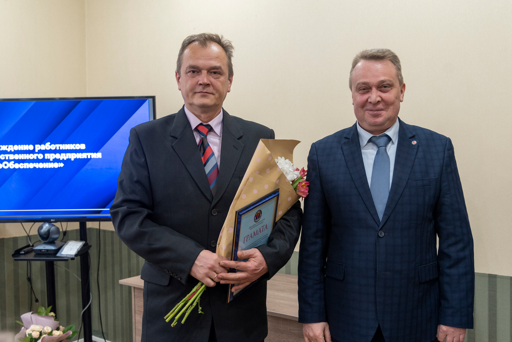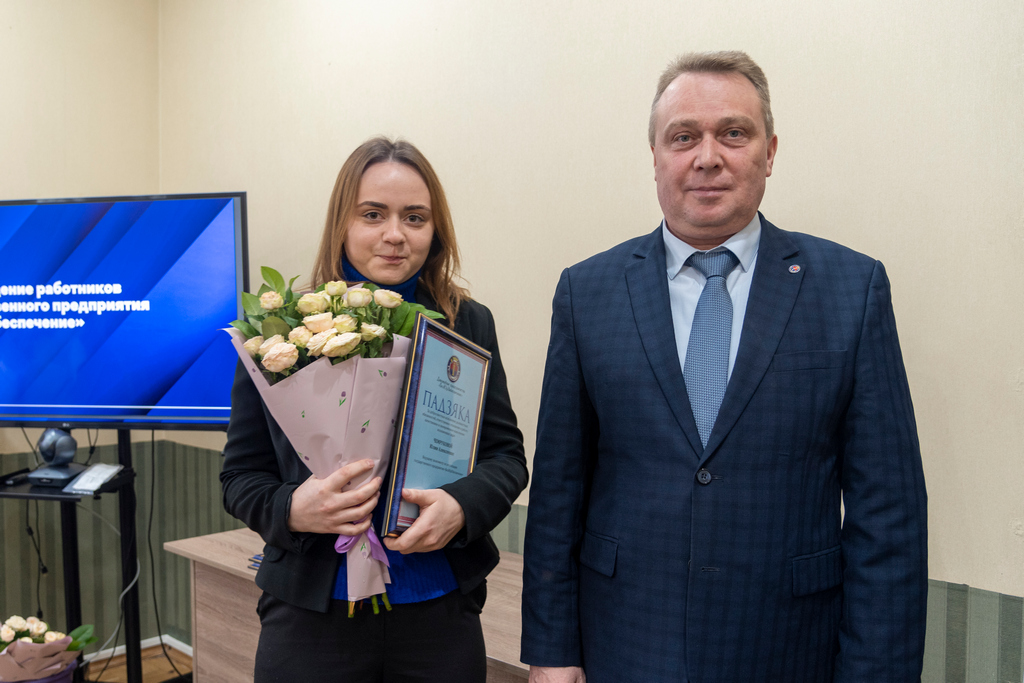 В ходе мероприятия состоялось награждение работников за добросовестный труд и ответственное отношение к работе. Значимый вклад первого генерального директора Кадышева А.В. в становление и развитие предприятия отмечен Почетной грамотой. Грамотами предприятия награждены заместитель начальника отдела планово-экономической работы Валько Н.В., ведущий экономист Веремейчик Н.В., ведущий инженер по материально-техническому снабжению Сидорович В.Э., старший охранник Койко А.А., инженер охранно-пожарной сигнализации Бойков А.В. Благодарности предприятия объявлены ведущему оценщику Кулешову В.А., ведущему экономисту по реализации Чемруковой Ю.А., ведущему специалисту по документационному обеспечению Егоровой Л.А., специалисту по строительству и эксплуатации зданий Северину Д.Т.