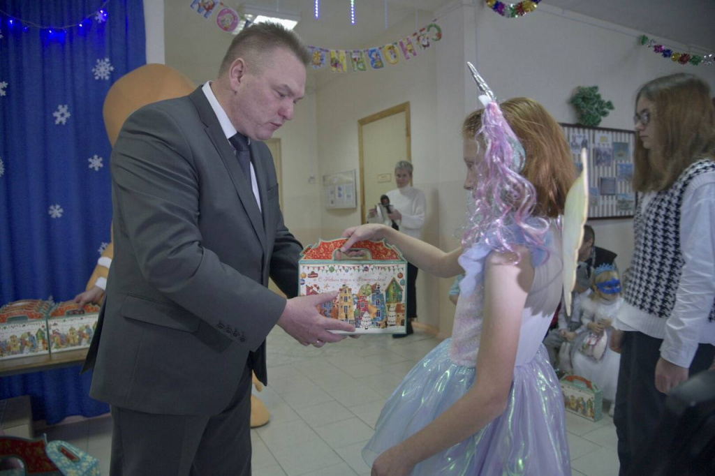 В завершение мероприятия в подарок школе были вручены аудиоколонка и СВЧ-печь, а каждый ребенок получил праздничный набор конфет.