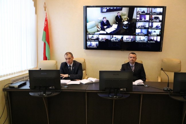 В этот же день, в конференц-зале управления принудительного исполнения главного управления юстиции Могиобисполкома, Александр Александрович посредством видеоконференцсвязи провел встречу с работниками, выполняющими трудовую функцию в территориальных отделах принудительного исполнения Могилевской области.