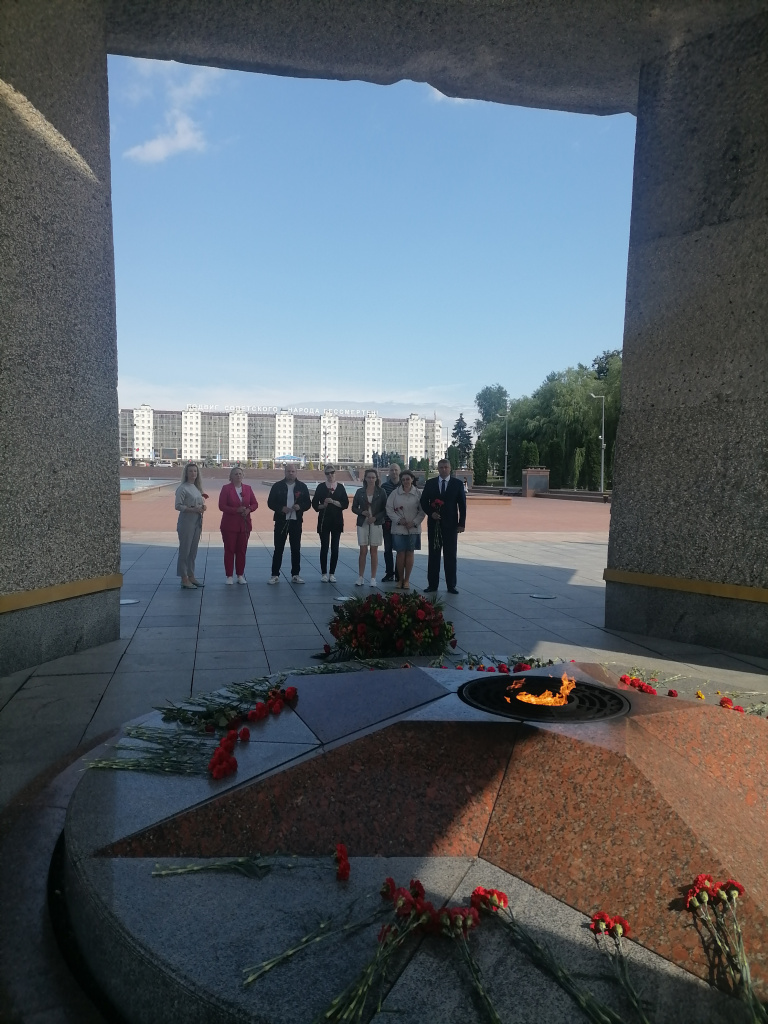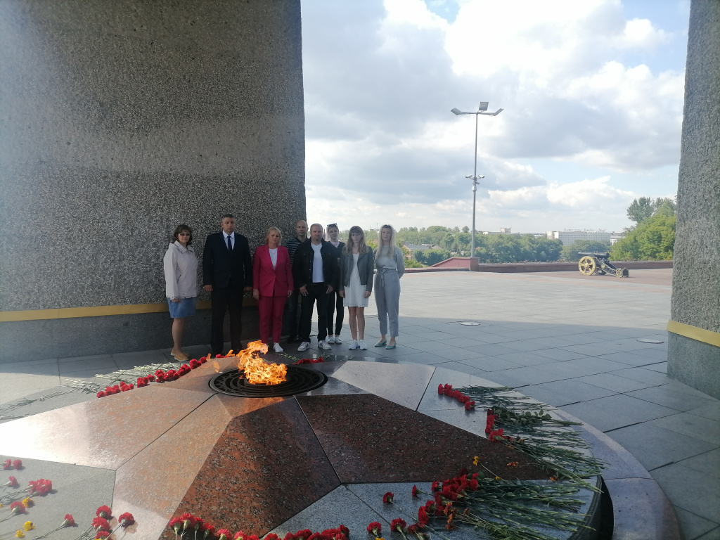 В преддверии праздника, работники Витебского филиала республиканского унитарного предприятия по оказанию услуг «БелЮрОбеспечение» возложили цветы у вечного огня мемориального комплекса в честь советских воинов, партизан и подпольщиков Витебщины.
