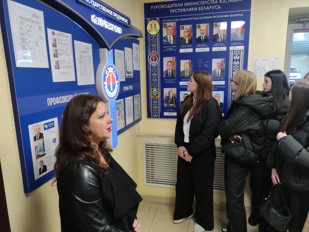 27 октября 2023 года с целью ознакомления с деятельностью государственного предприятия «БелЮрОбеспечение» проведена экскурсия для учащихся профильных классов отделов принудительного исполнения ГУО «Гимназия г.Калинковичи».