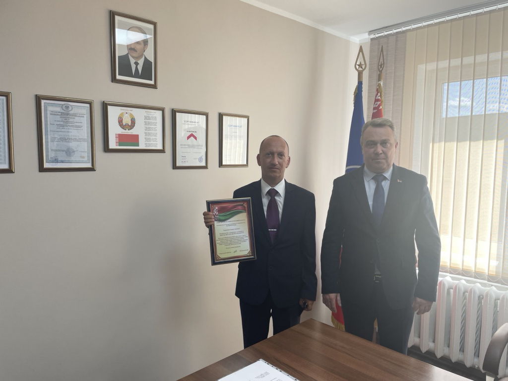 Сегодня генеральный директор государственного предприятия «БелЮрОбеспечение» Дашковский Валерий Владимирович представил коллективу Брестского филиала нового директора Азаревича Андрея Адамовича. Генеральный директор предприятия подчеркнул, что задача перед новым руководителем стоит непростая – оперативно включиться в работу и обеспечить выполнение принятых решений для дальнейшей успешной работы филиала, а также уделил внимание вопросам подбора и расстановки кадров, сохранению кадрового ядра филиала и ответственного подхода к финансовой и хозяйственной дисциплине. Валерий Владимирович пожелал новому руководителю успехов в новой должности: «Пусть Ваше руководство будет нацелено на достижение положительных результатов. Уверен, что Ваш многолетний опыт службы на руководящих должностях позволит успешно выполнять задачи, поставленные перед Брестским филиалом и предприятием, а также придаст импульс развития филиала».