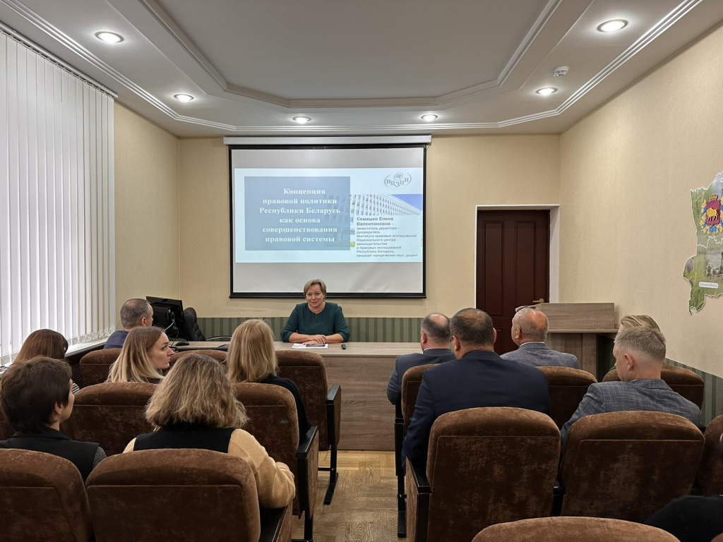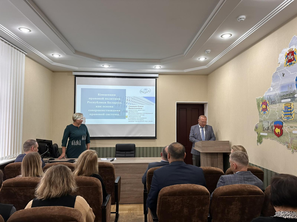Сегодня перед сотрудниками центрального аппарата государственного предприятия «БелЮрОбеспечение» выступила Елена Семашко – заместитель директора - руководитель Института правовых исследований Национального центра законодательства и правовых исследований Республики Беларусь, кандидат юридических наук, доцент.