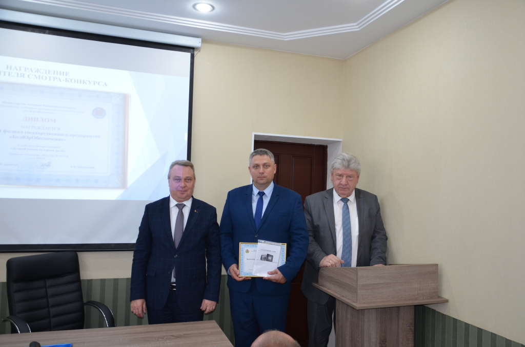 В заключительной части совещания, в ходе рассмотрения итогов проведения смотра-конкурса «Лучший уголок по охране труда», до участников совещания доведена информация о критериях подведения итогов в соответствии с Положением о проведении смотра-конкурса и принятом решении определить победителем Витебский филиал предприятия. Директора филиалов провели презентацию кабинетов по охране труда, созданных на базе филиалов предприятия.