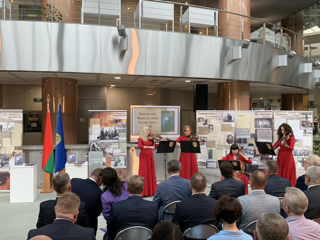Все приглашенные имели возможность ознакомиться с выставками «Без срока давности. Беларусь» и «Хатынская трагедия», а также в ходе презентации продемонстрирован фильм о зверствах нацистов на белорусской земле, подготовленный учреждением «Белорусский государственный архив кинофотофонодокументов».
