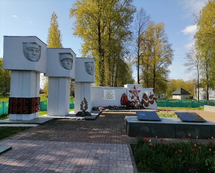 Воинский мемориал представляет собой архитектурный ансамбль: более 40 лет взирают сверху на мирную жизнь барельефы танкиста, пехотинца и летчика, застывшие в бетоне, рядом с ними – стена памяти. В центре мемориала – Братская могила, в которой захоронено более 4000 бойцов, вдоль мемориальных плит – такие же захоронения. Ко Дню Победы на территории мемориала распускаются ярко-красные тюльпаны, местные жители говорят, что это души погибших бойцов, которые сверху, как и журавли, берегут каждого из нас.
