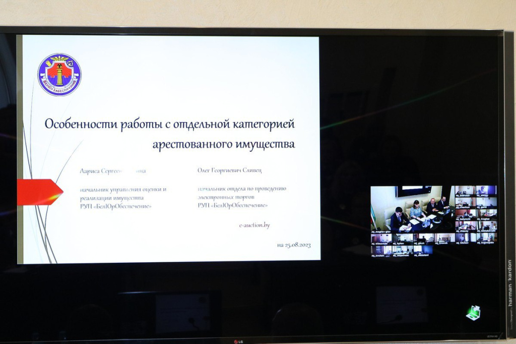 С докладом о проблемных вопросах в работе с арестованным имуществом выступила начальник управления оценки и реализации имущества РУП по оказанию услуг «БелЮрОбеспечение» Лариса Есина, в котором комплексно рассмотрела аспекты взаимодействия работников предприятия и судебных исполнителей по оценке, хранению и реализации арестованного имущества должников. Интерес у аудитории вызвал доклад начальника отдела по проведению электронных торгов государственного предприятия «БелЮрОбеспечение» Олега Сливца об особенностях обращения взыскания на арестованную криптовалюту должников, ее оценки и реализации.