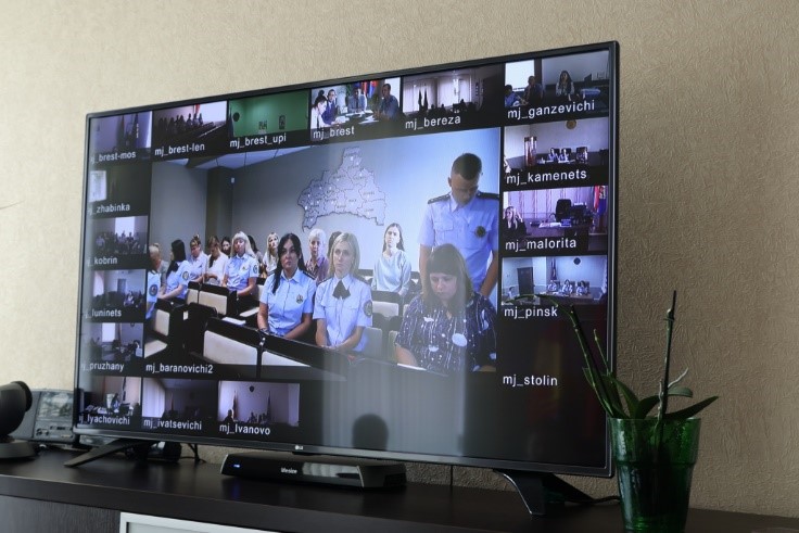 Мероприятие собрало большой состав сотрудников всего Брестского региона с помощью системы видеоконференцсвязи, в том числе водителей автомобилей территориальных органов принудительного исполнения.