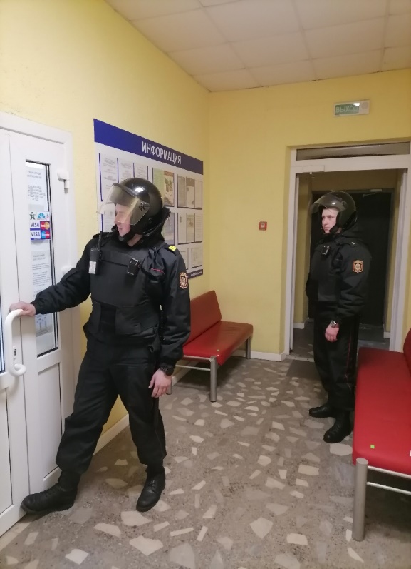В 16.08 поступил сигнал тревоги с установленной стационарной кнопки тревожной сигнализации, расположенной в магазине Витебского филиала. Наряд группы задержания Октябрьского (г.Витебска) отдела Департамента охраны Министерства внутренних дел приехал в 16.12 в боевой готовности (экипированные в бронежилеты и защитные шлемы) и приступили к осмотру и изучению торгового объекта.