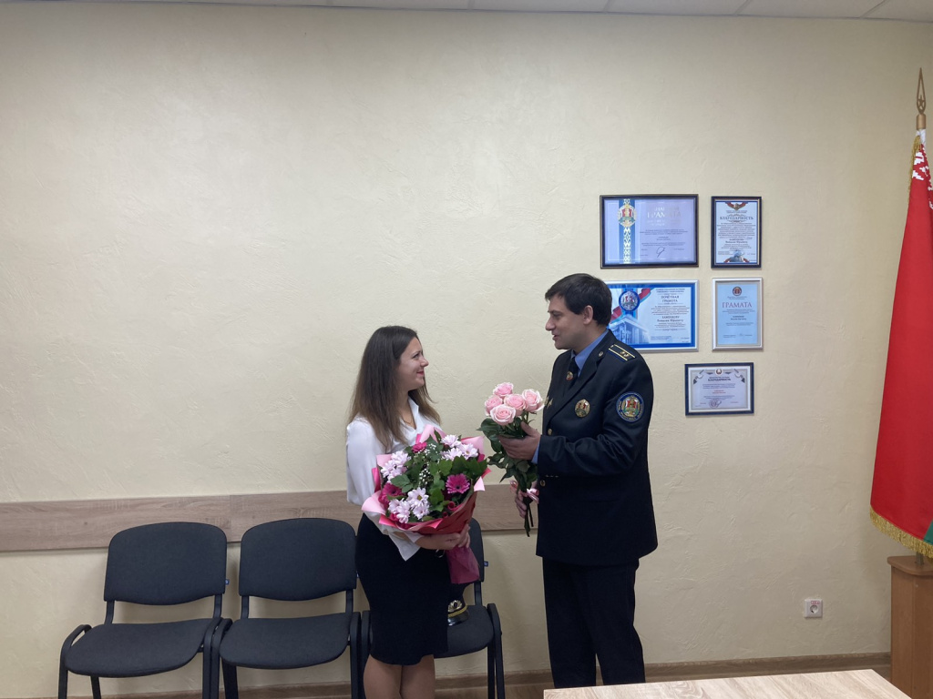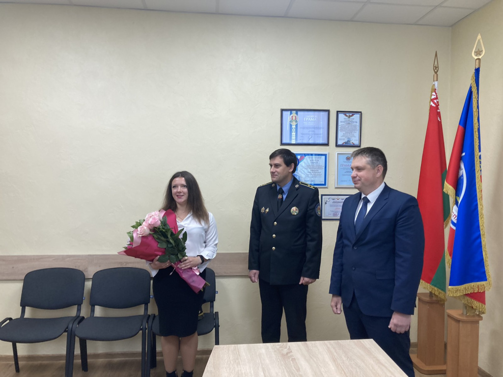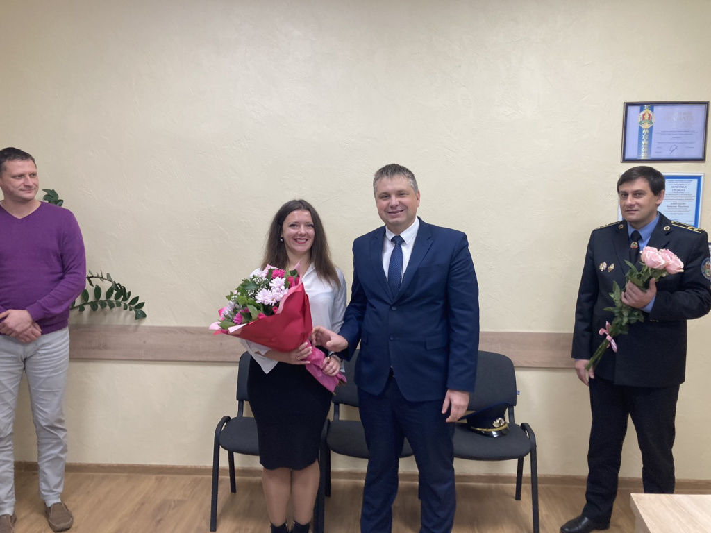 Директор Гомельского филиала Хаменков В.Ю. отметил, что за время работы Анна Александровна проявила себя опытным специалистом, грамотно применяя на практике знания в области трудового законодательства, делопроизводства и идеологической работы, что позволит в дальнейшем выполнять поставленные задачи на высоком профессиональном уровне.