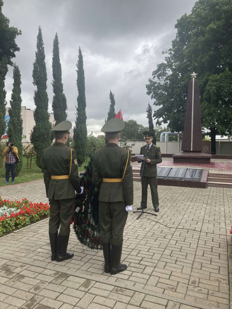 Работниками Гомельского филиала государственного предприятия «БелЮрОбеспечение» к монументу возложили цветы. В память воинам, отдавшим свою жизнь за светлое будущее нашей Родины присутствующие почтили минутой молчания.