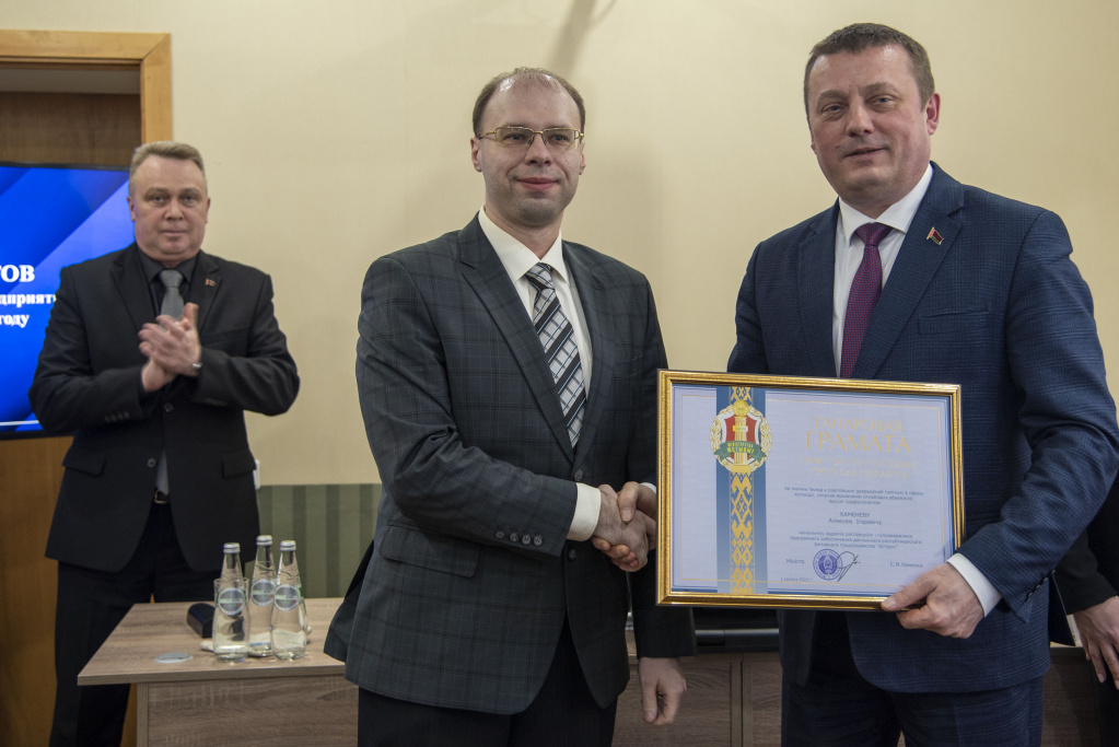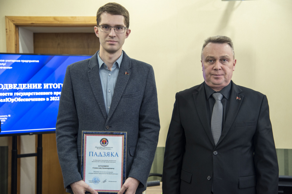 За высокий профессионализм и добросовестное отношение к выполнению должностных обязанностей благодарность государственного предприятия «БелЮрОбеспечение» объявлена заместителю начальника отдела бухгалтерского учета и финансов Светлане Скрынник, ведущему специалисту по кадрам Светлане Вареник, ведущему специалисту по продаже Станиславу Астасевичу.