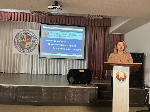 18 апреля 2023 года на базе Минского филиала УО "Белорусский торгово-экономический университет потребительской кооперации" состоялся открытый диалог начальника управления кадровой и учебно-методической работы Поповой Е.В. и заместителя начальника ОПИ Заводского района г. Минска Сарапуловой А.Л. со студентами выпускного курса юридического факультета по специальности «Правоведение».