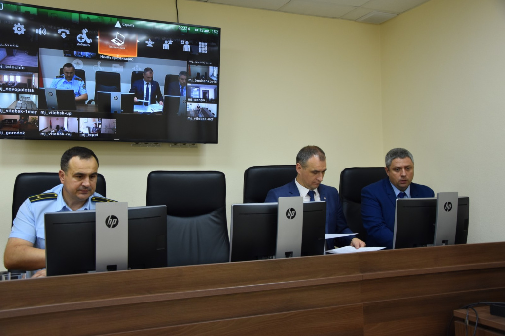15.08.2023 на базе управления принудительного исполнения главного управления юстиции Витебского областного исполнительного комитета состоялось селекторное совещание для водителей автомобилей Витебского филиала государственного предприятия «БелЮрОбеспечение», в том числе работающих в территориальных отделах принудительного исполнения. Участие в нем приняли заместитель генерального директора по безопасности государственного предприятия «БелЮрОбеспечение» Александр Александрович Маныло, директор Витебского филиала Алексей Николаевич Шляхто и заместитель начальника управления принудительного исполнения Николай Николаевич Кабачевский.