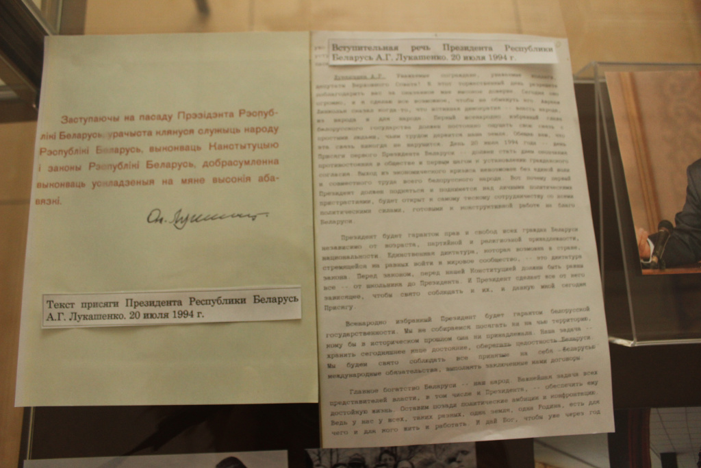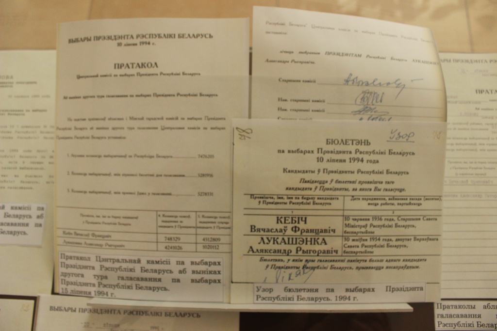 На выставке представлен ряд уникальных документальных материалов из фондов Национального архива Республики Беларусь и Белорусского государственного архива кинофотофонодокументов (постановления, протоколы, заявления, листовки, газетные публикации, фотографии и др.), рассказывающие об организации первых президентских выборов в отечественной истории, ходе избирательной кампании и итоговых результатах первого и второго туров, вступлении Александра Лукашенко в должность Президента Республики Беларусь и его деятельности на этом высоком и ответственном государственном посту.