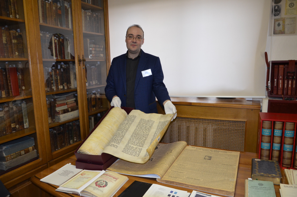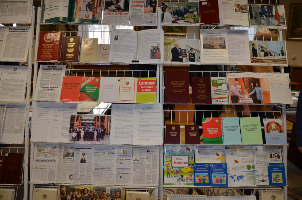 Главный библиотекарь Елена Сергеевна Понтаплева представила тематическую выставку «Конституция Республики Беларусь – от прошлого к будущему», рассказала о формировании исторической вехи Конституции Республики Беларусь, о наиболее ценных собраниях, редких документах и подробностях их издания и хранения, а также состоялась презентация тематической подборки правовых документов и специальной литературы.