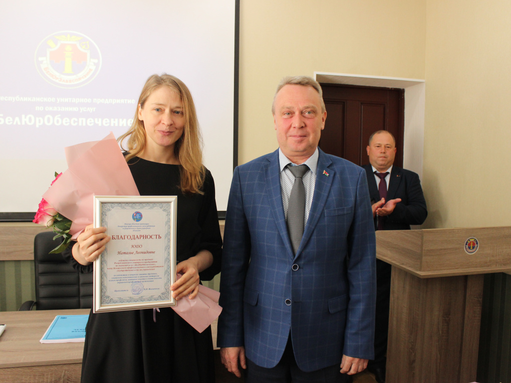Генеральный директор предприятия «БелЮрОбеспечение» Валерий Владимирович Дашковский лично вручил награды за высокий профессиональный уровень, активное участие в деятельности профсоюзной организации и содействие в защите трудовых и социально-экономических интересов членов профсоюза.